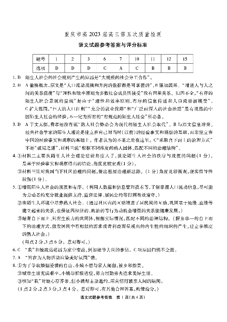 高三语文答案-重庆市南开中学2023届高三质量检测(五)