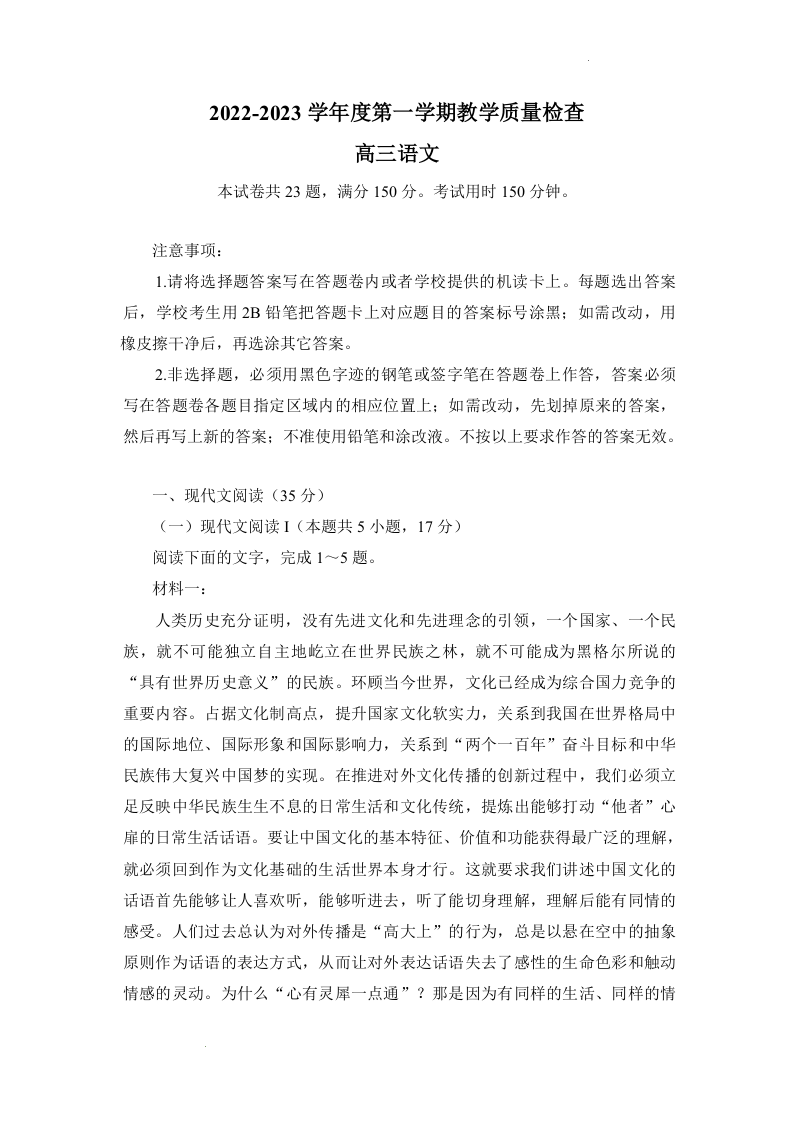 高三语文-广东省东莞市2023届高三上学期期末教学质量检查