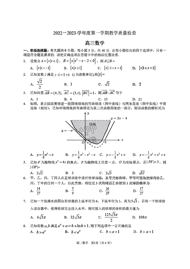高三数学-广东省东莞市2023届高三上学期期末教学质量检查