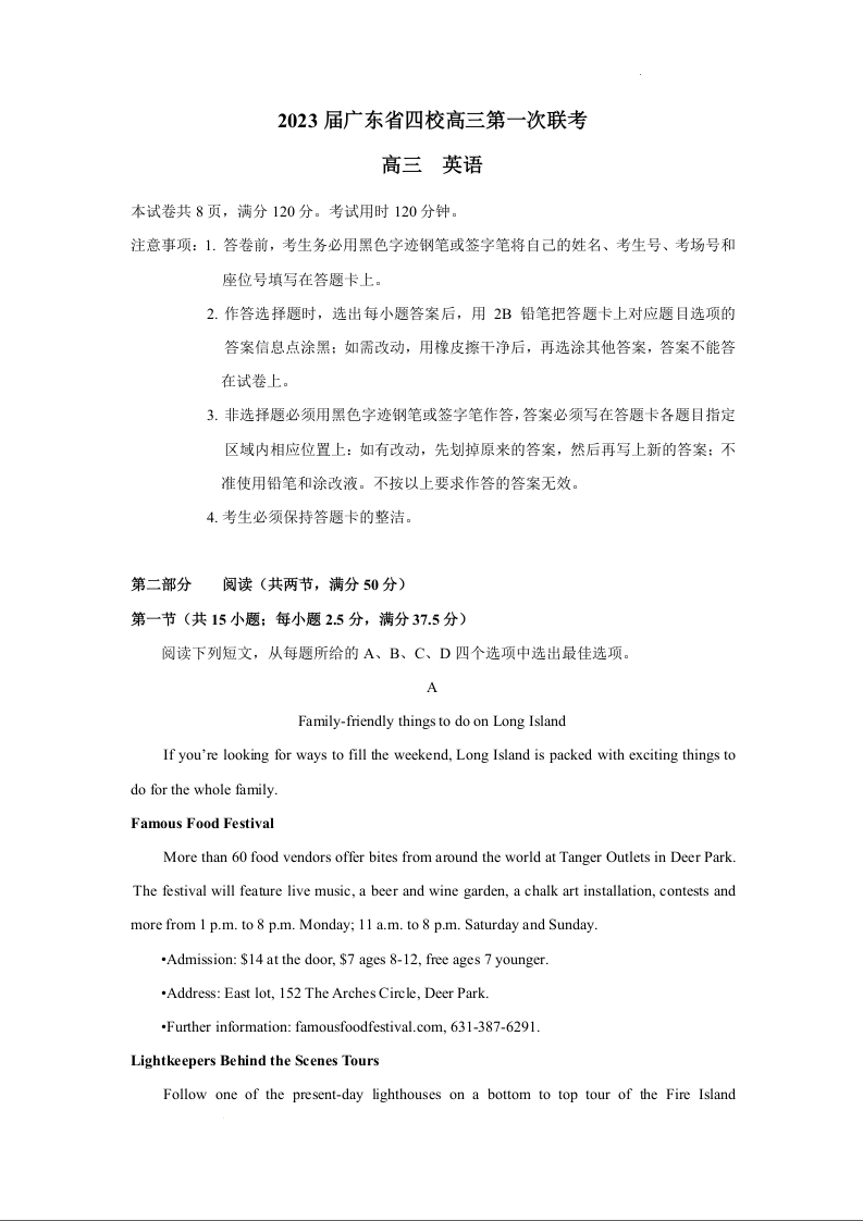高三英语+答案-广东省四校 (深圳中学,华师附中,省实验,广雅)2023届高三上学期第一次联考