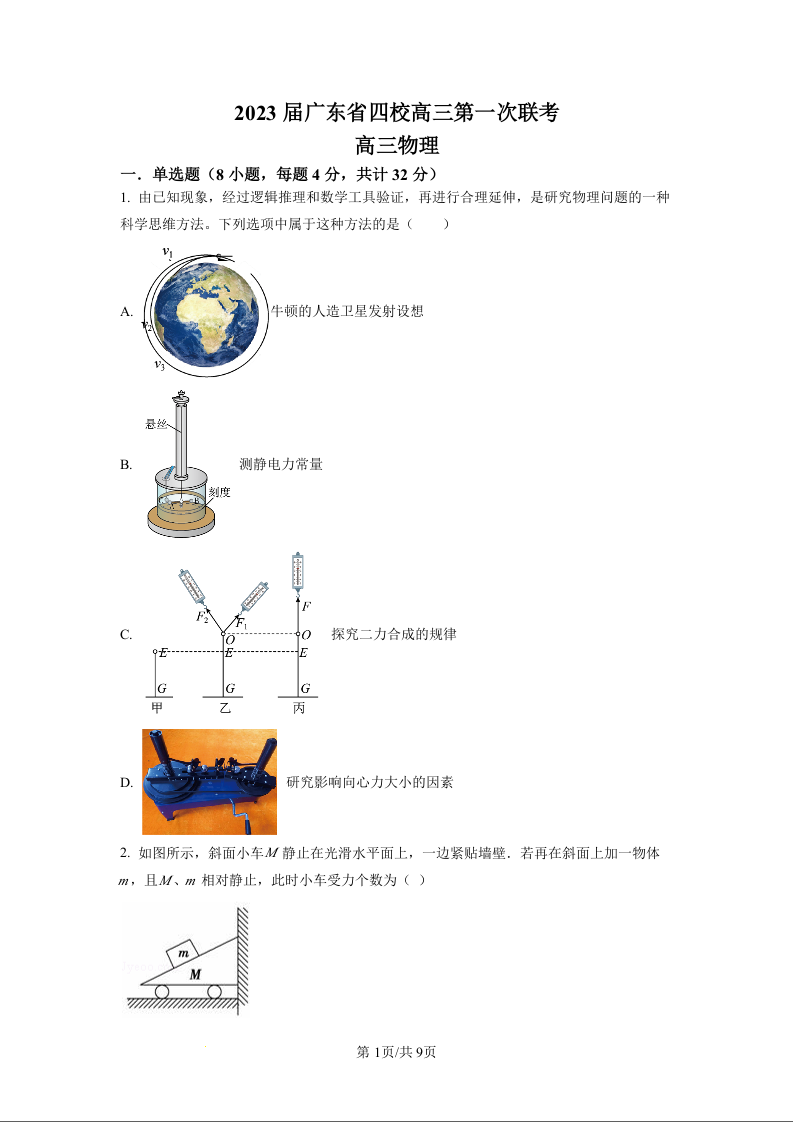 高三物理+答案-广东省四校 (深圳中学,华师附中,省实验,广雅)2023届高三上学期第一次联考