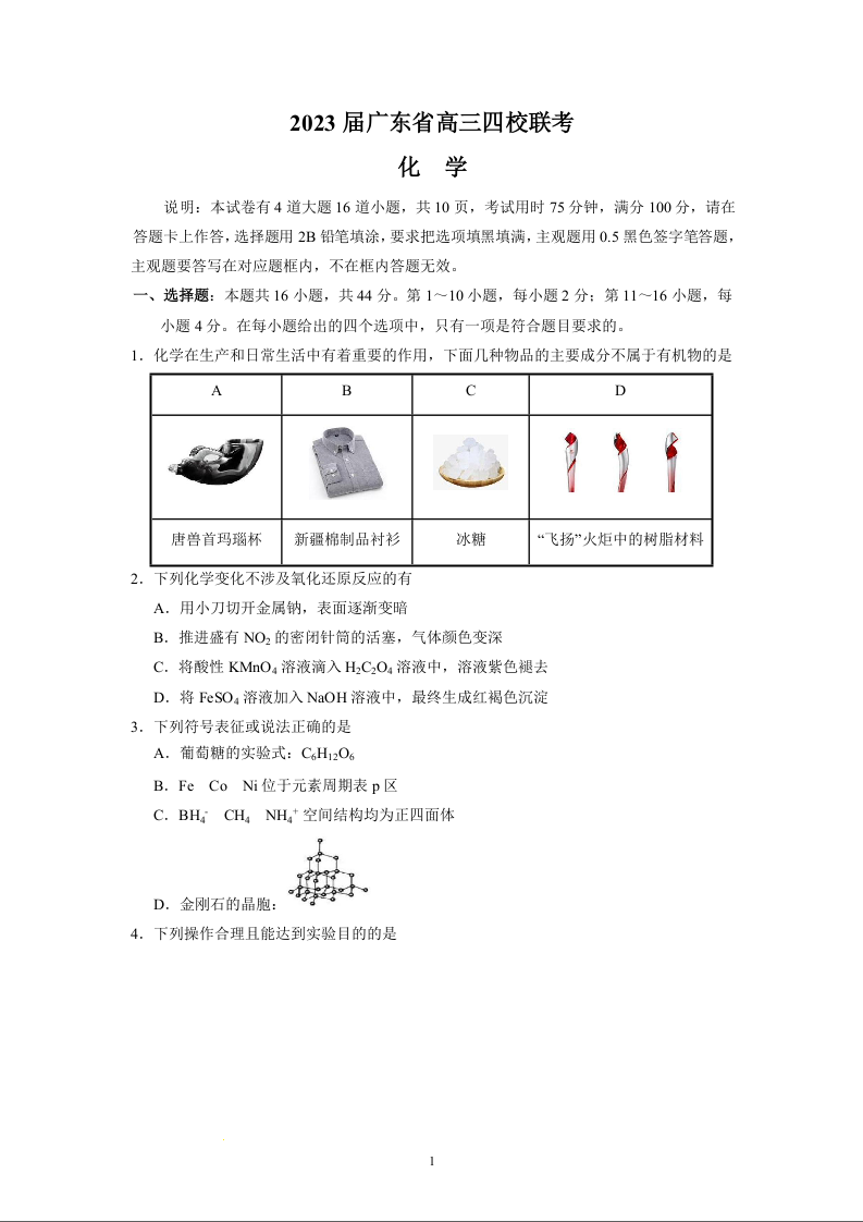 高三化学+答案-广东省四校 (深圳中学,华师附中,省实验,广雅)2023届高三上学期第一次联考
