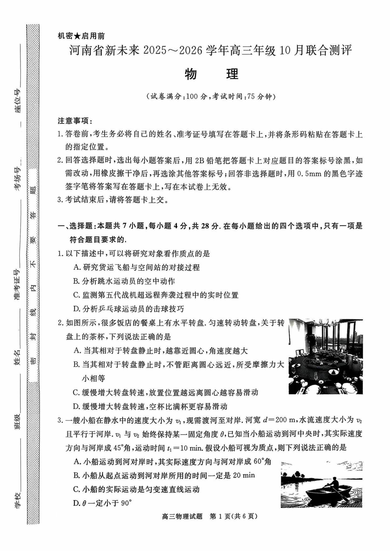 高三物理+答案--河南省新未来大联考2026届高三上学期10月联合测评