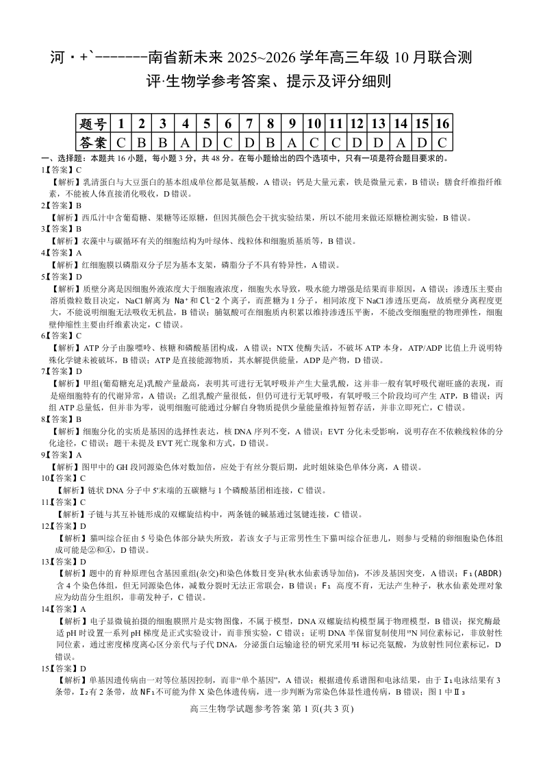高三生物答案--河南省新未来大联考2026届高三上学期10月联合测评