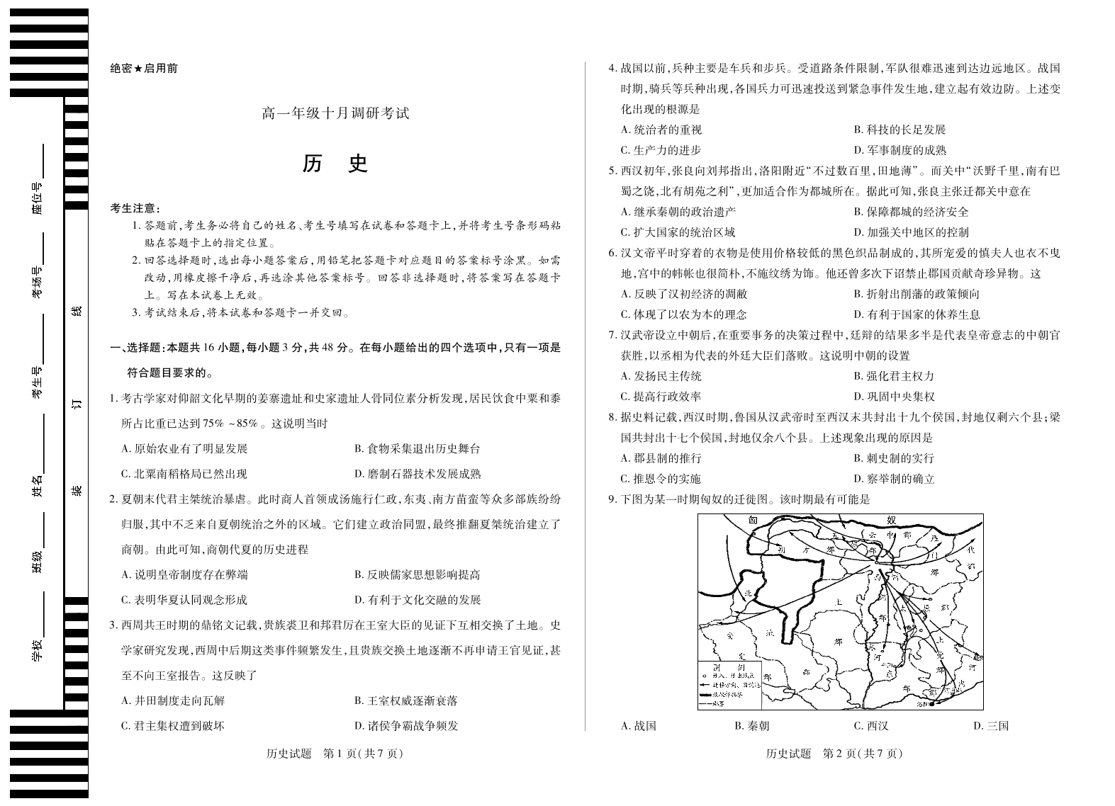高一历史--安徽省天一大联考2025-2026学年上学期高一年级10月调研考试