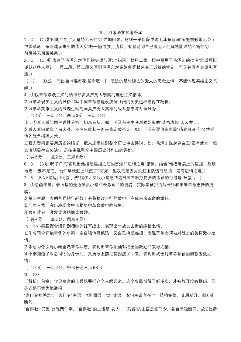 高一语文答案--山东省济宁市实验中学2025-2026学年高一上学期10月月考