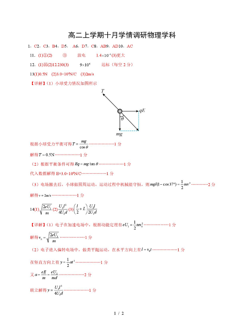 高二物理答案--河南省郑州市第二高级中学2025-2026学年高二上学期10月月考