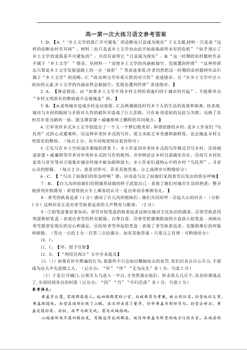 高一语文答案--湖南省岳阳市颐华高级中学(平江)2025-2026学年高一上学期第一次月考