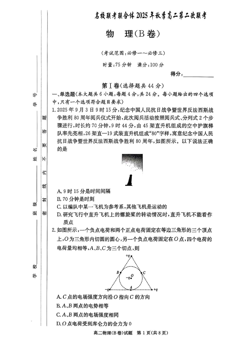高二物理B--湖南省炎德英才名校联考联合体2025年秋季高二第二次联考