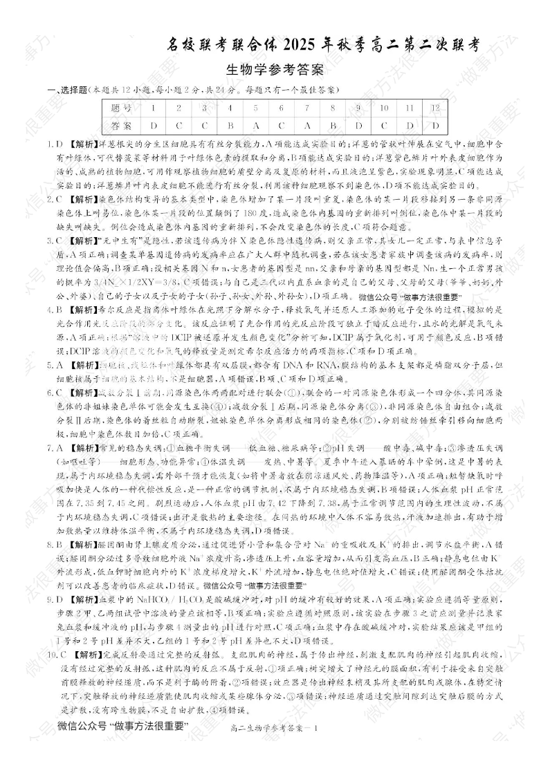 高二生物答案--湖南省炎德英才名校联考联合体2025年秋季高二第二次联考