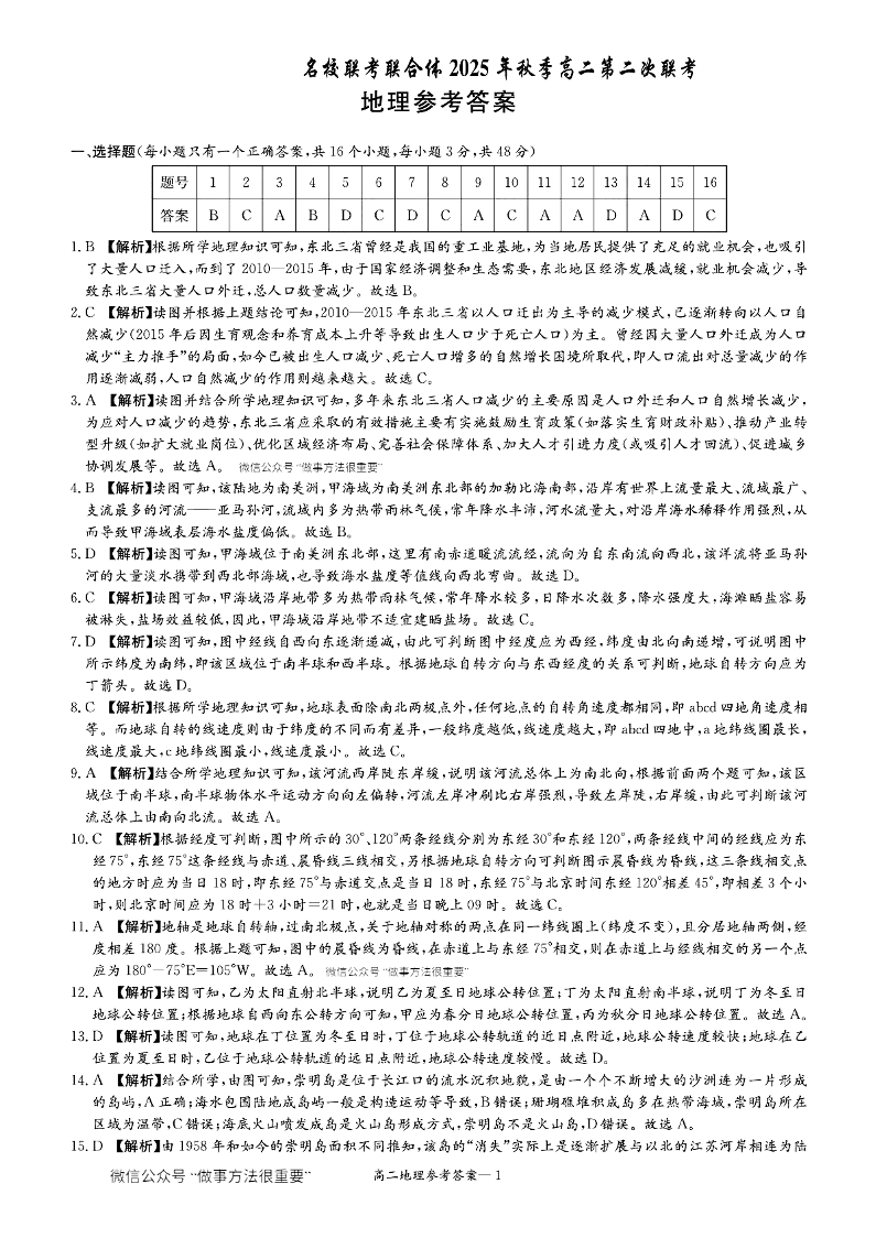 高二地理答案--湖南省炎德英才名校联考联合体2025年秋季高二第二次联考