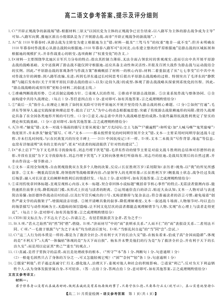高二语文答案--河北省保定市八校2025-2026学年高二上学期10月月考