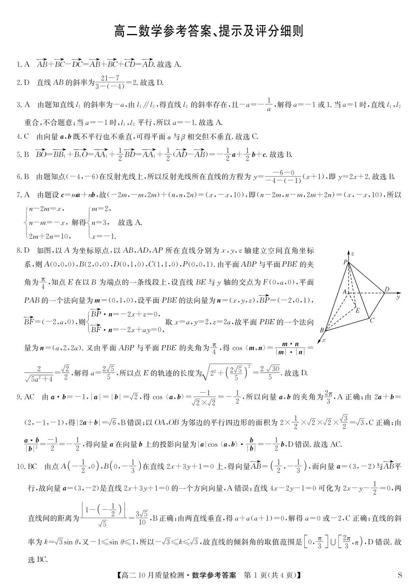 高二数学答案--河北省保定市八校2025-2026学年高二上学期10月月考