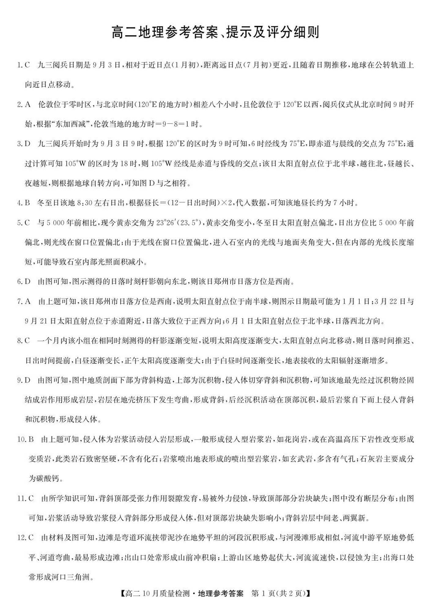 高二地理答案--河北省保定市八校2025-2026学年高二上学期10月月考