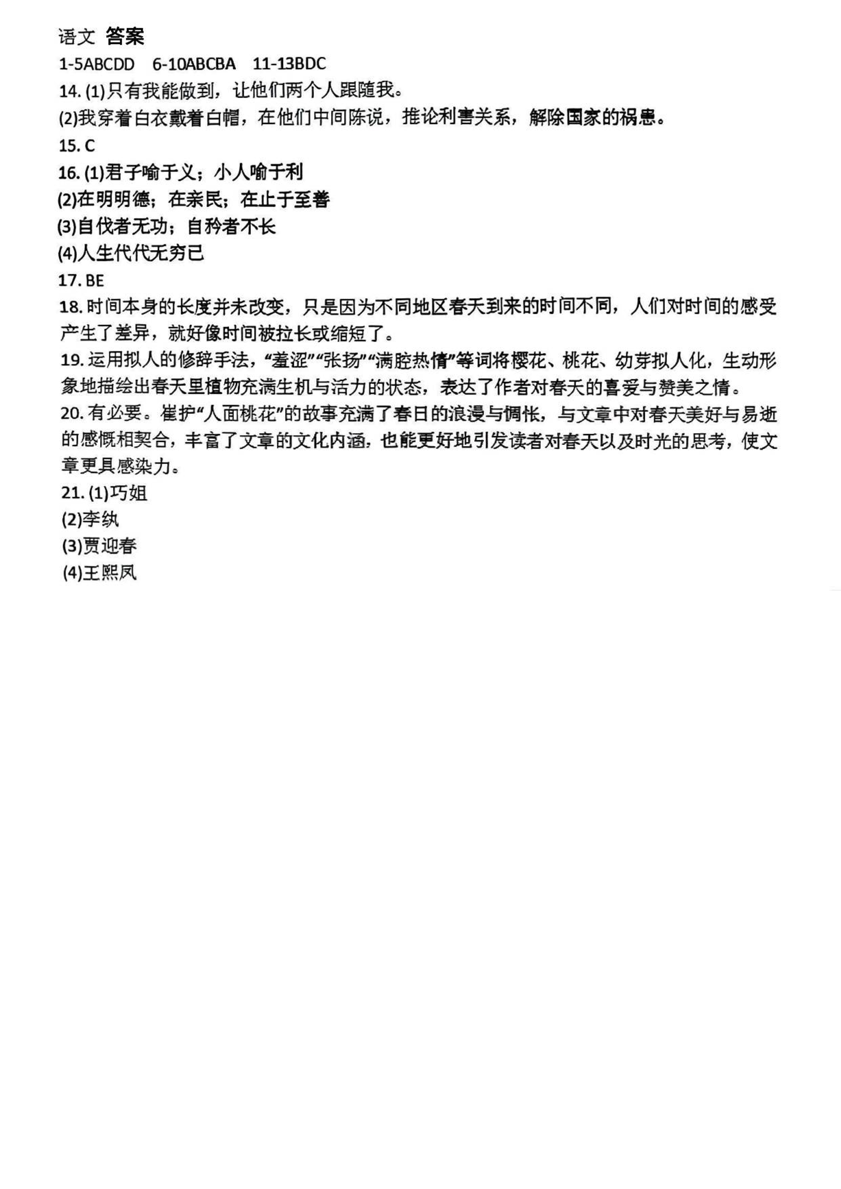 高二语文答案--天津市第二中学2025-2026学年高二上学期第一次月考
