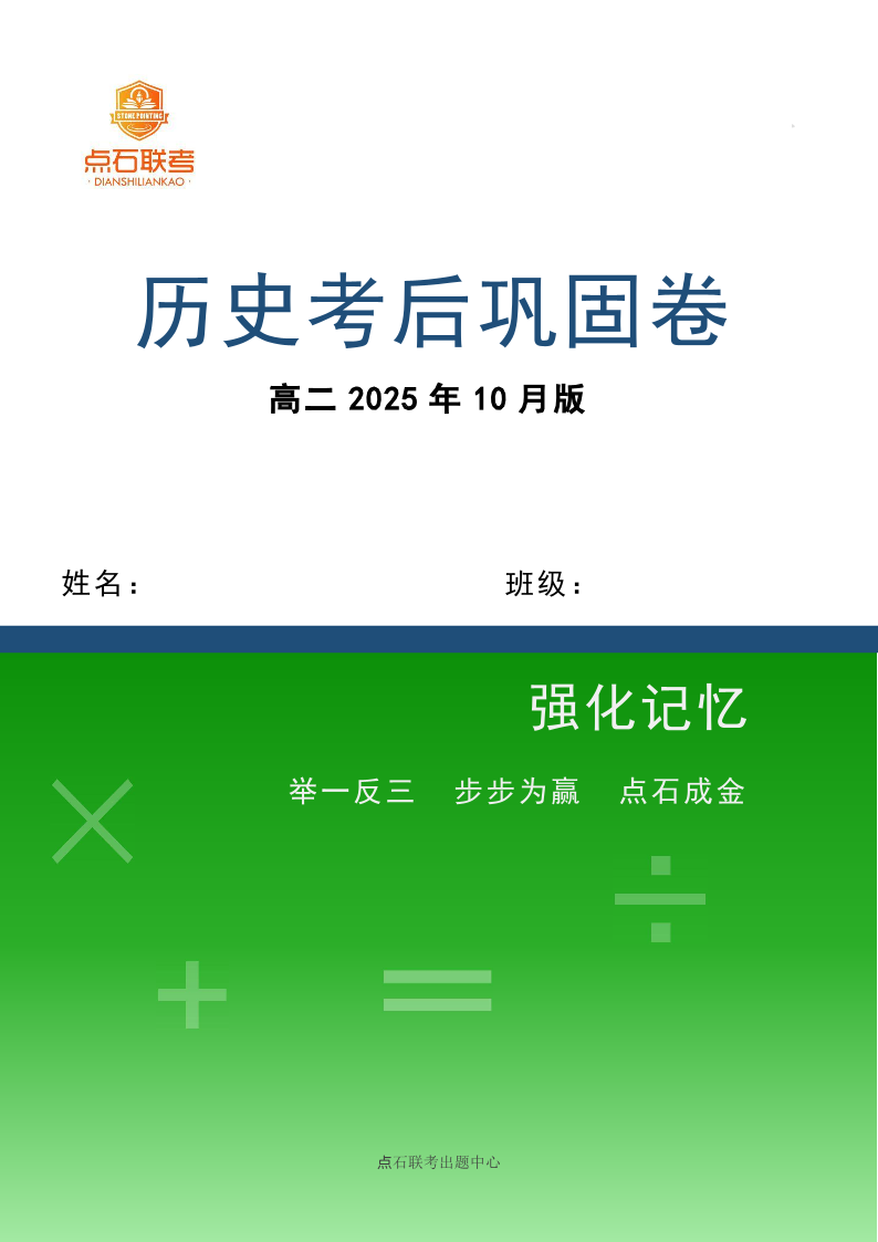 高二历史--辽宁省点石联考2025-2026学年高二10月巩固卷