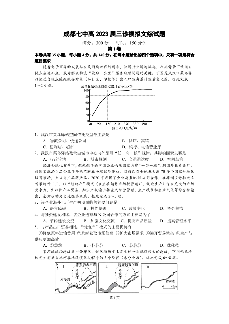 高三文综--四川省成都七中2023届三诊模拟考试