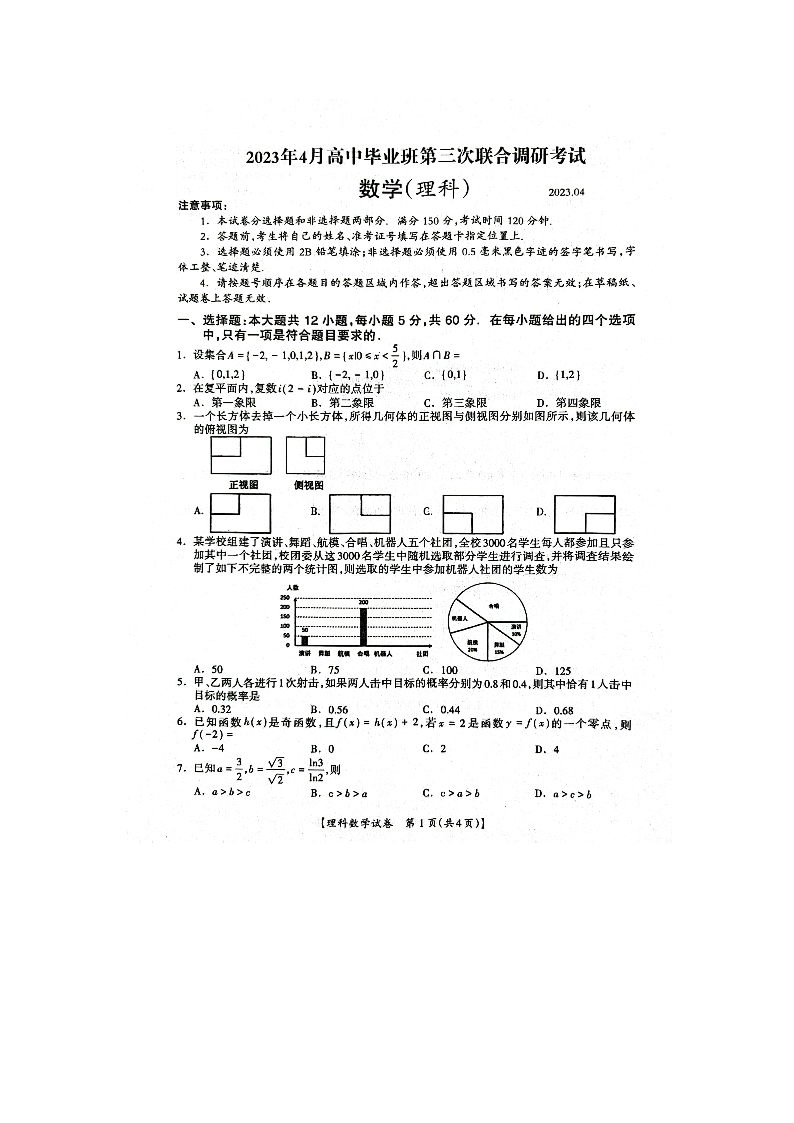 高三理数--广西2023届高中毕业班第三次联合调研考试