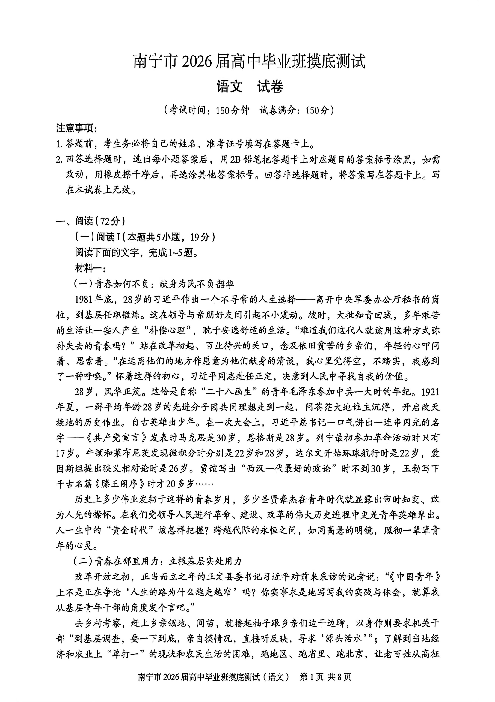 高三语文--广西省南宁市2026届高中毕业班10月摸底测试