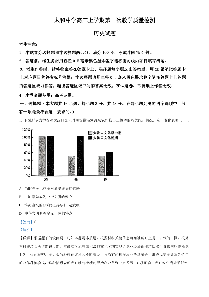 高三历史--安徽省阜阳市太和中学2026届高三上学期10月月考