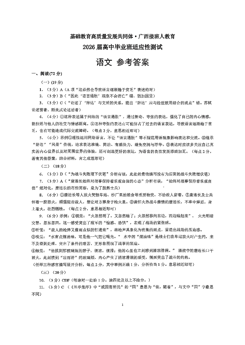 高三语文答案--广西接班人教育基础教育高质量发展共同体2026 届高中毕业班适应性测试