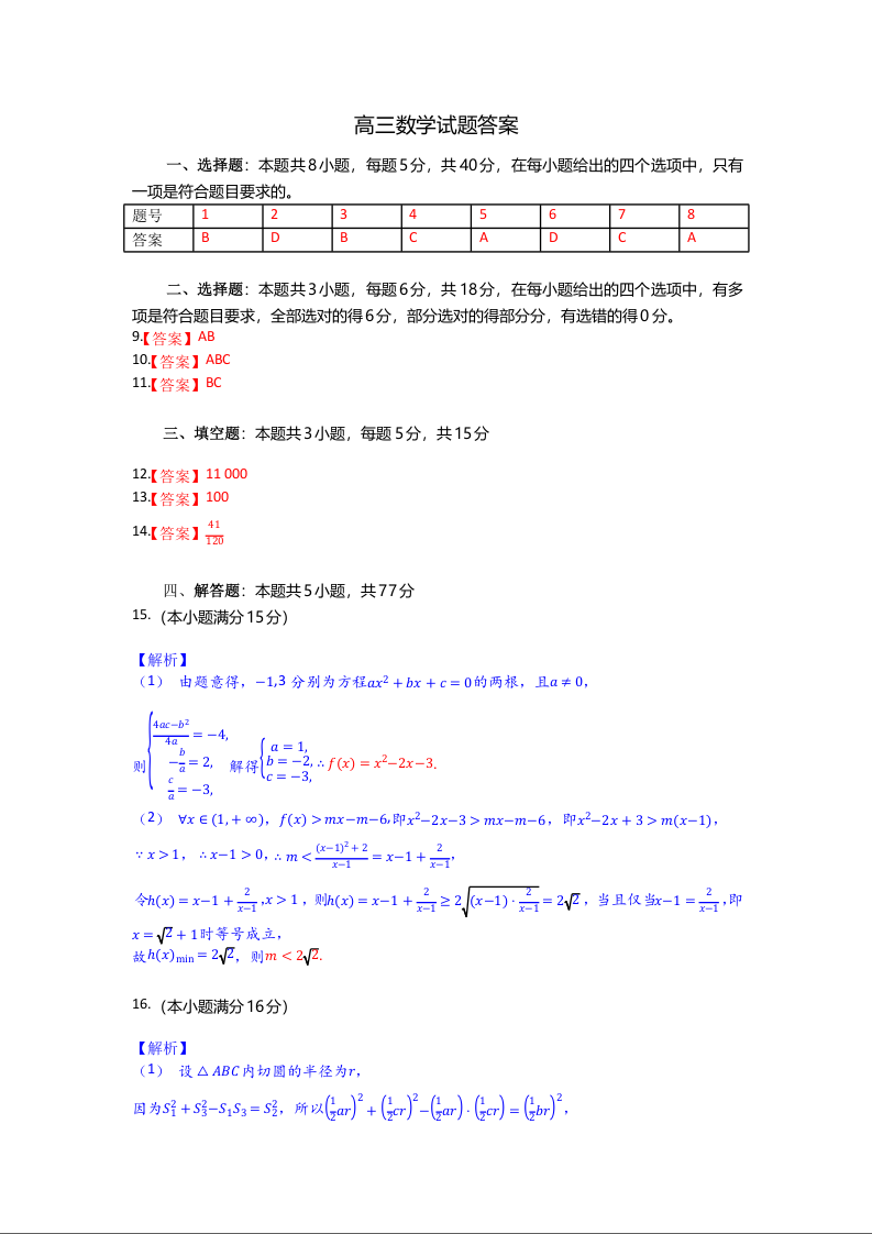 高三数学答案--湖北省部分高中协作体2026届高三上学期一模联考