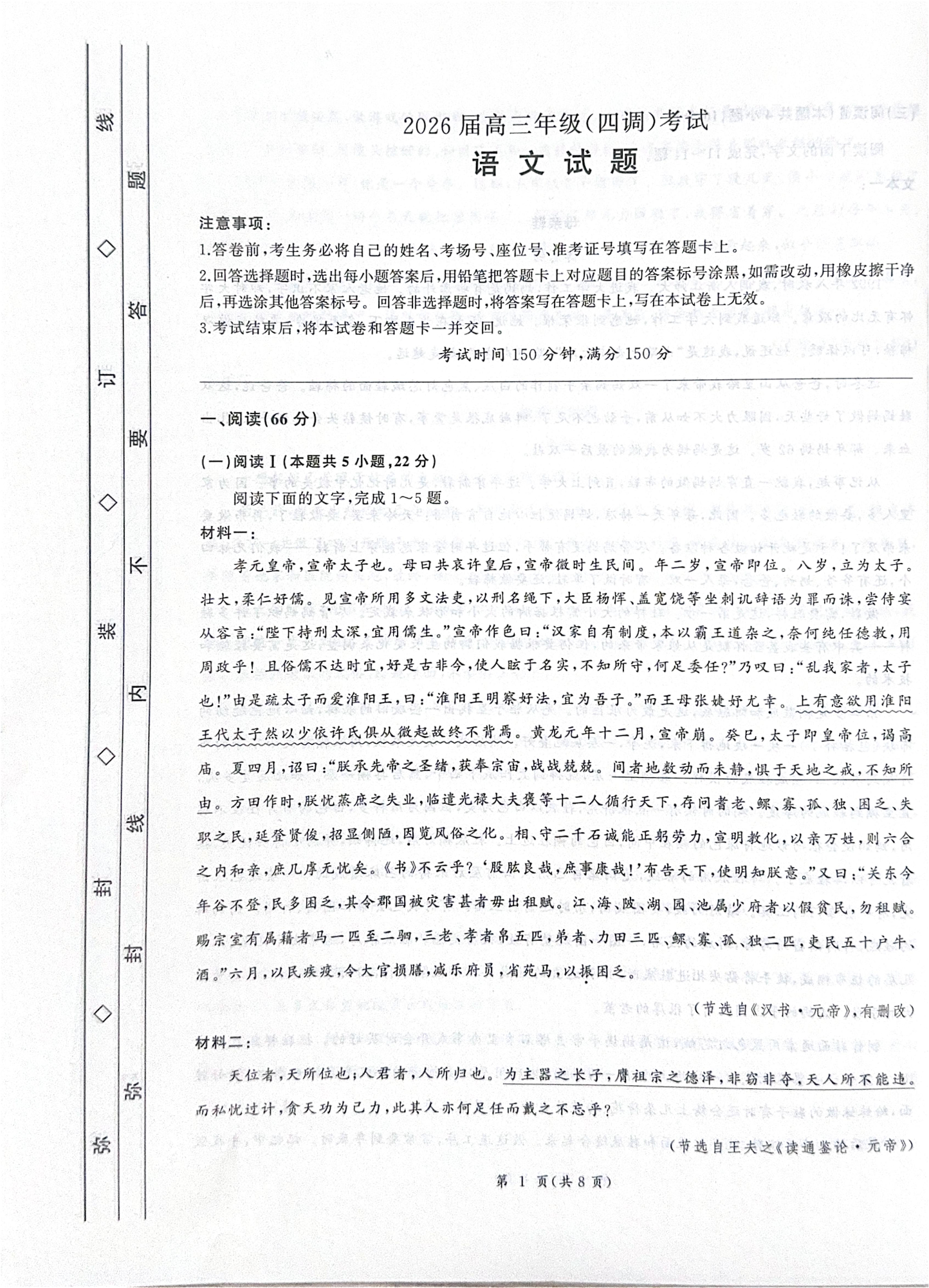 高三语文--河北省衡水市2026届高三上学期四调考试