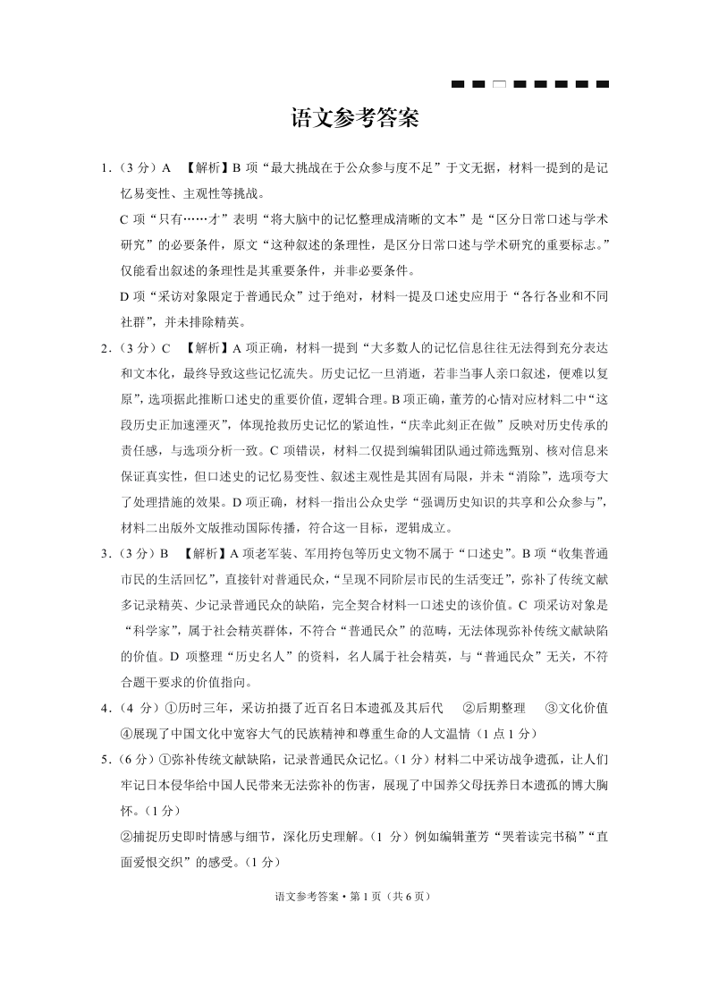 高三语文答案--重庆市第八中学2026届高考适应性月考卷(二)