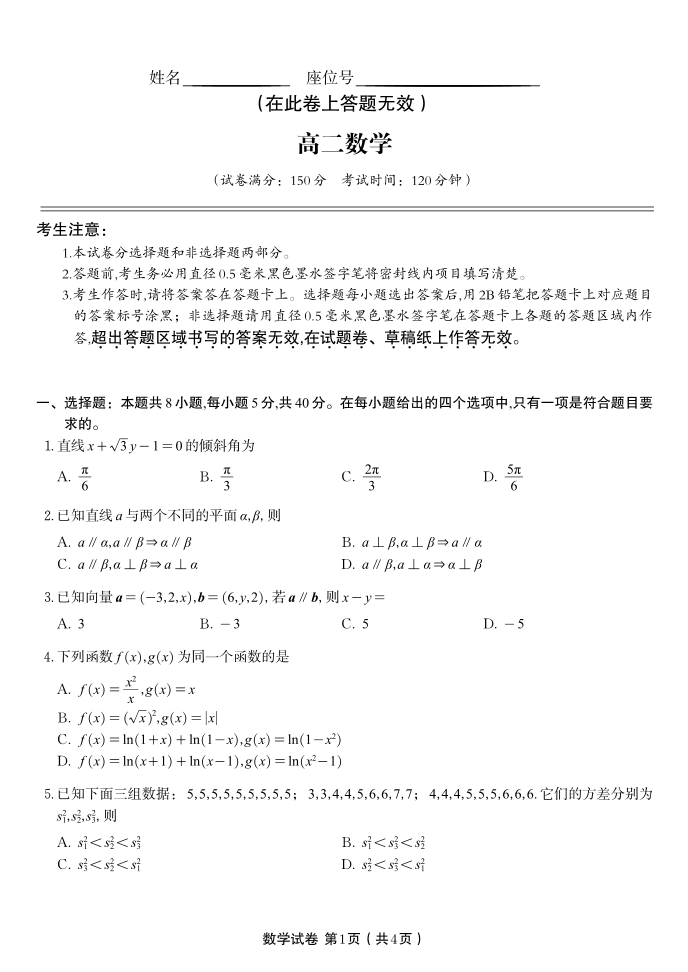 高二数学--安徽省皖江名校联盟2025-2026学年高二上学期10月阶段考