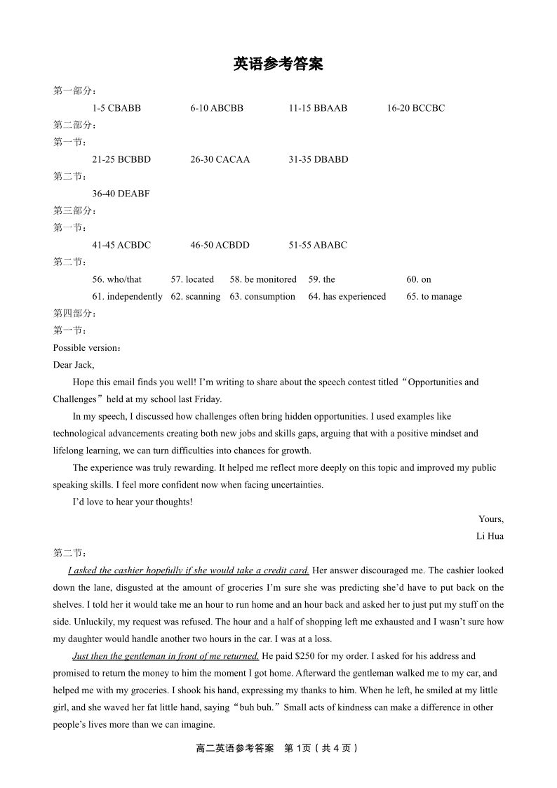 高二英语答案--安徽省皖江名校联盟2025-2026学年高二上学期10月阶段考