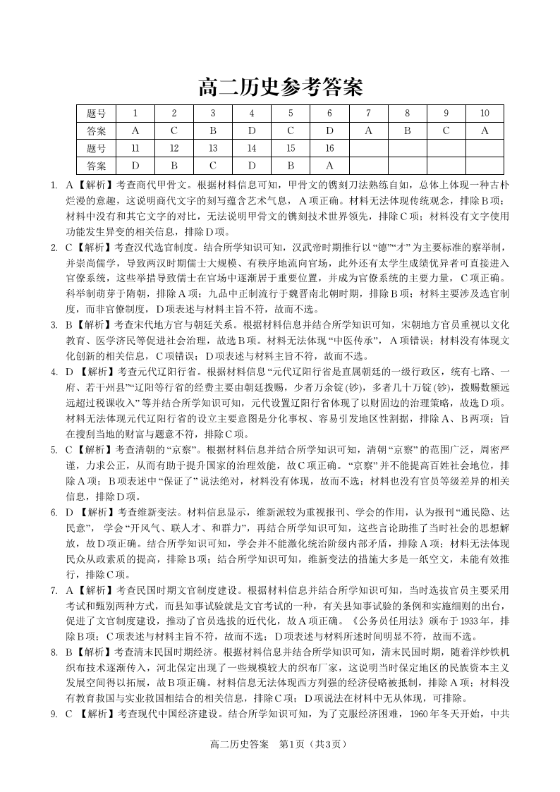 高二历史答案--安徽省皖江名校联盟2025-2026学年高二上学期10月阶段考