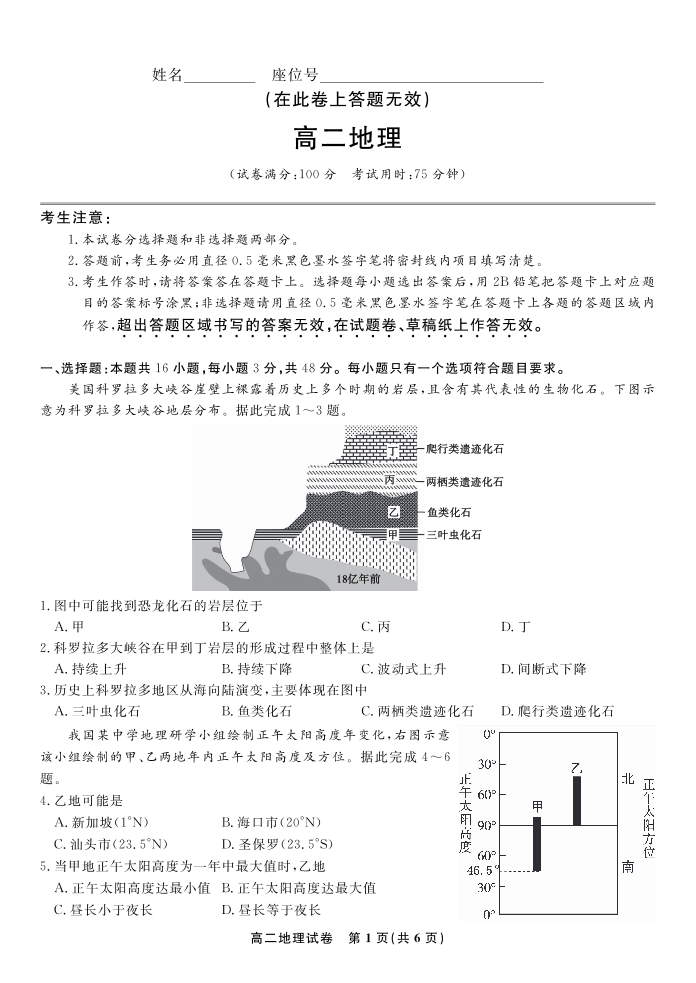 高二地理--安徽省皖江名校联盟2025-2026学年高二上学期10月阶段考