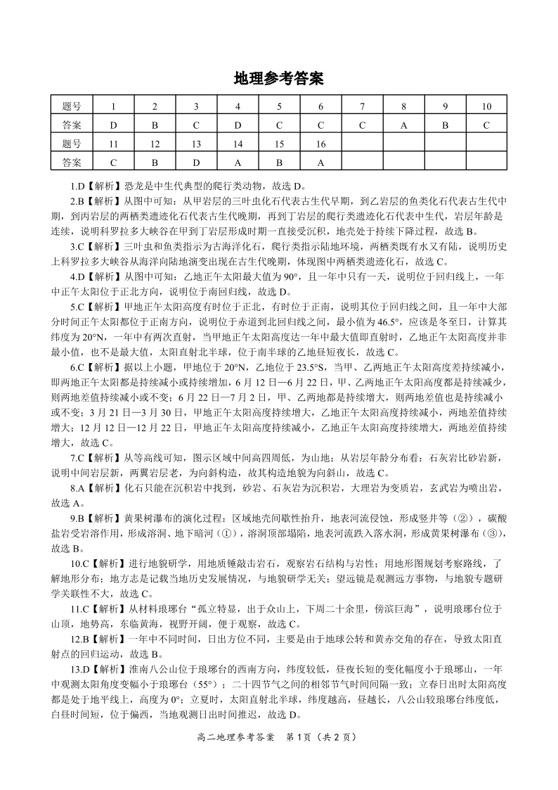 高二地理答案--安徽省皖江名校联盟2025-2026学年高二上学期10月阶段考