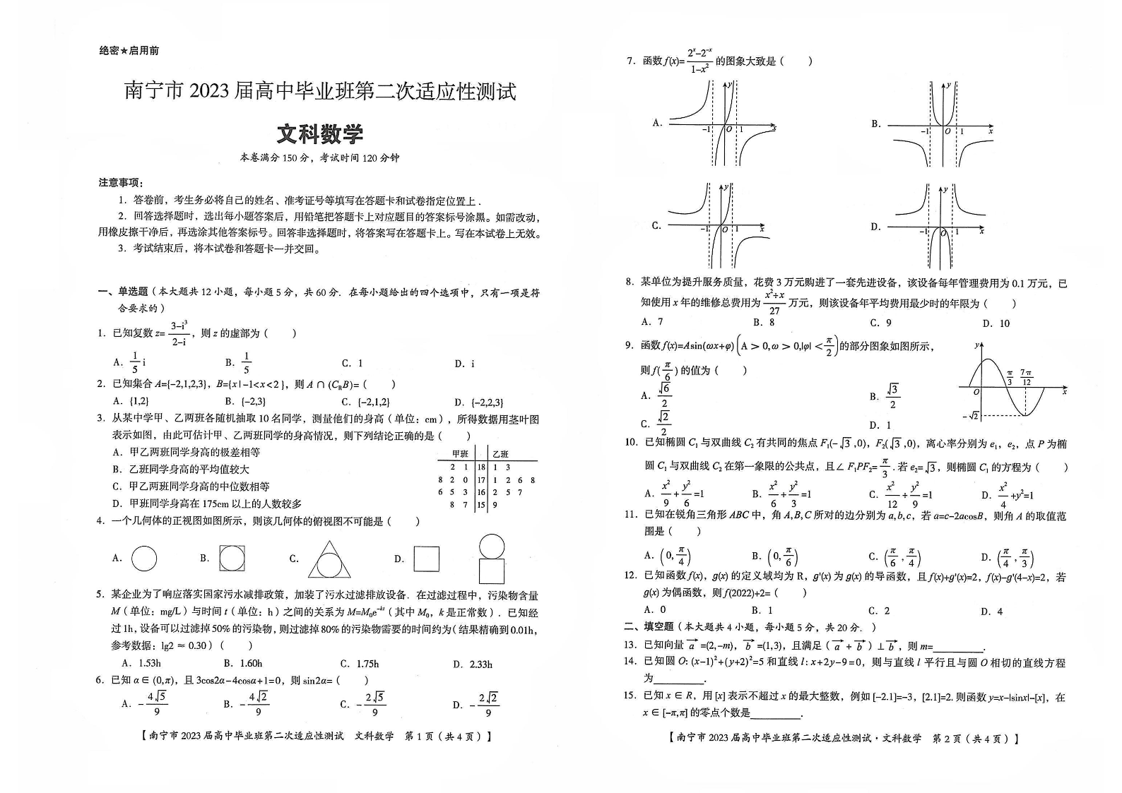 高三文数+答案--广西南宁市2023届高中毕业班第二次适应性测试(二模)