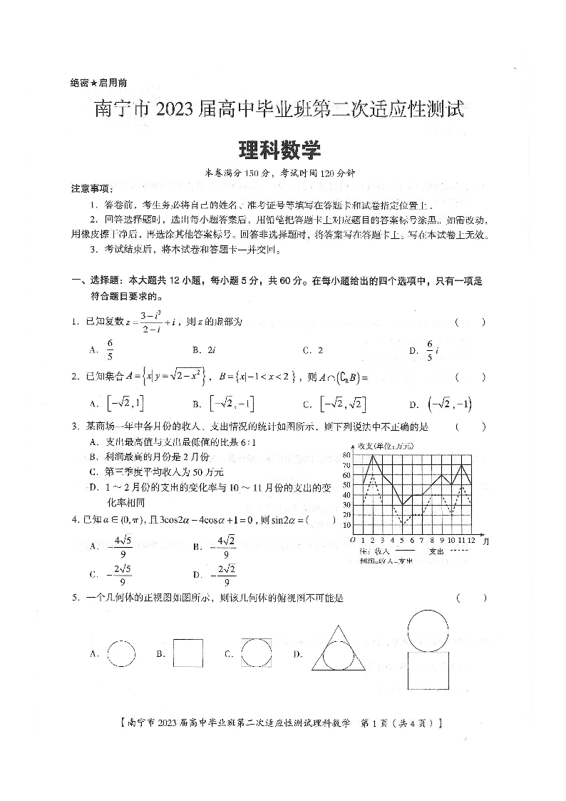 高三理数--广西南宁市2023届高中毕业班第二次适应性测试(二模)