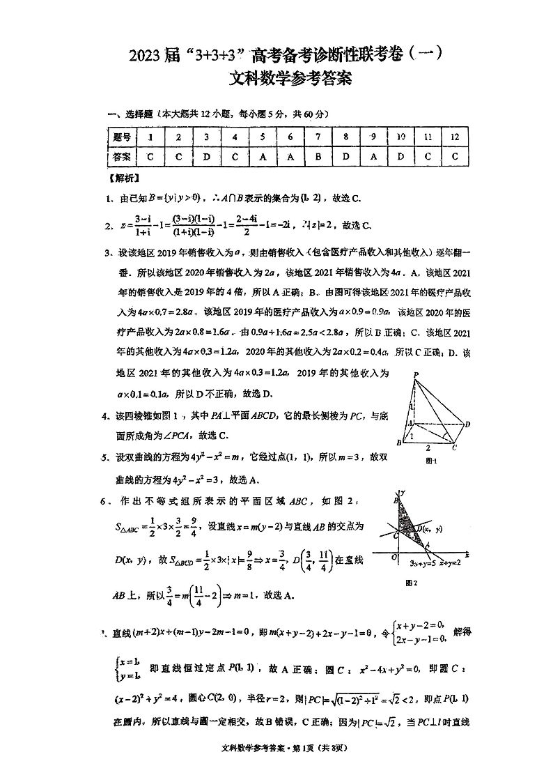 高三文科数学答案--贵州省2023届3+3+3高考备考诊断性联考(一)