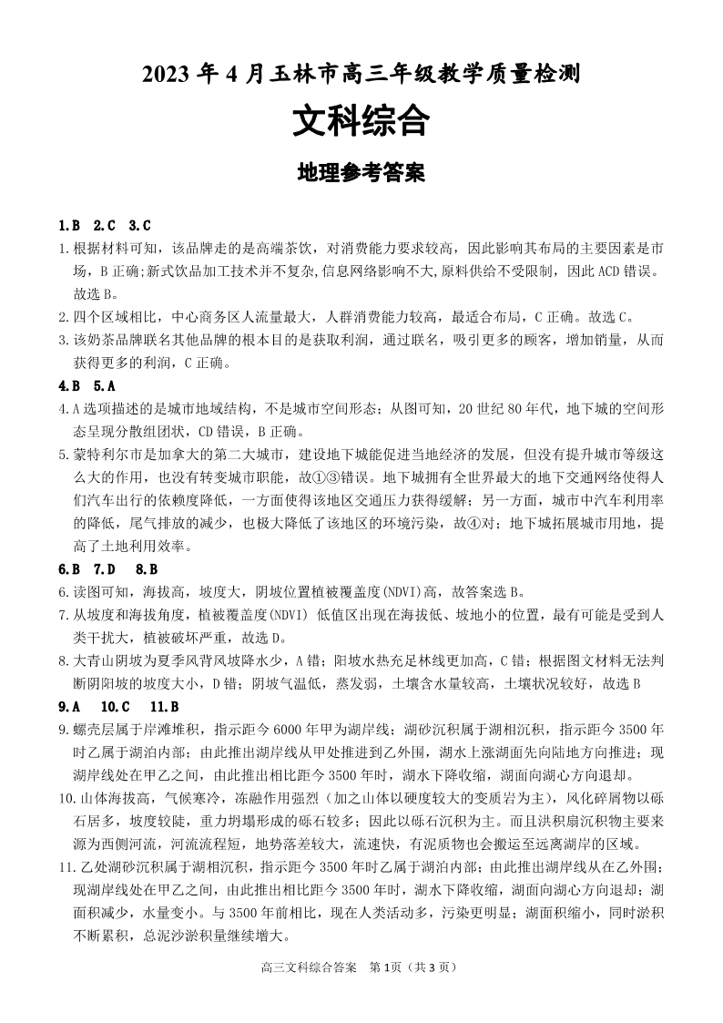 高三文综地理答案--广西壮族自治区玉林市2023届高三下学期三模