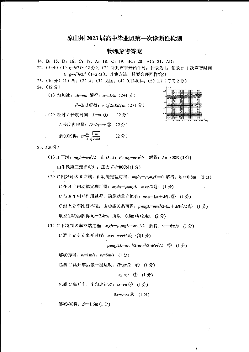 高三理综答案--四川省凉山州高中毕业班第一次诊断性检测