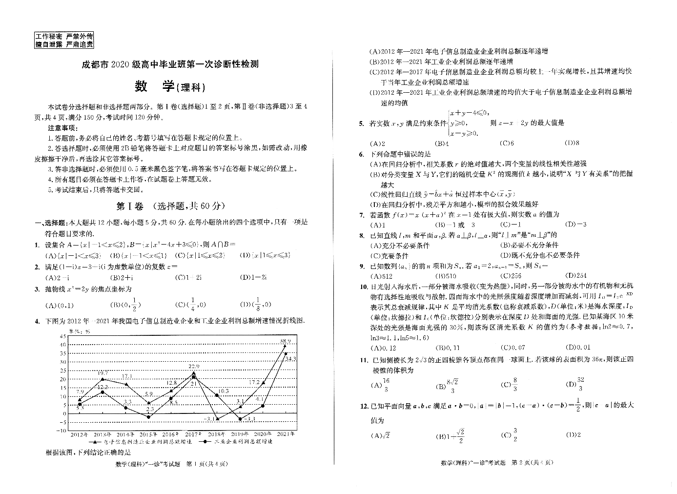 高三理数--四川成都市2020级高中毕业班第一次诊断性检测