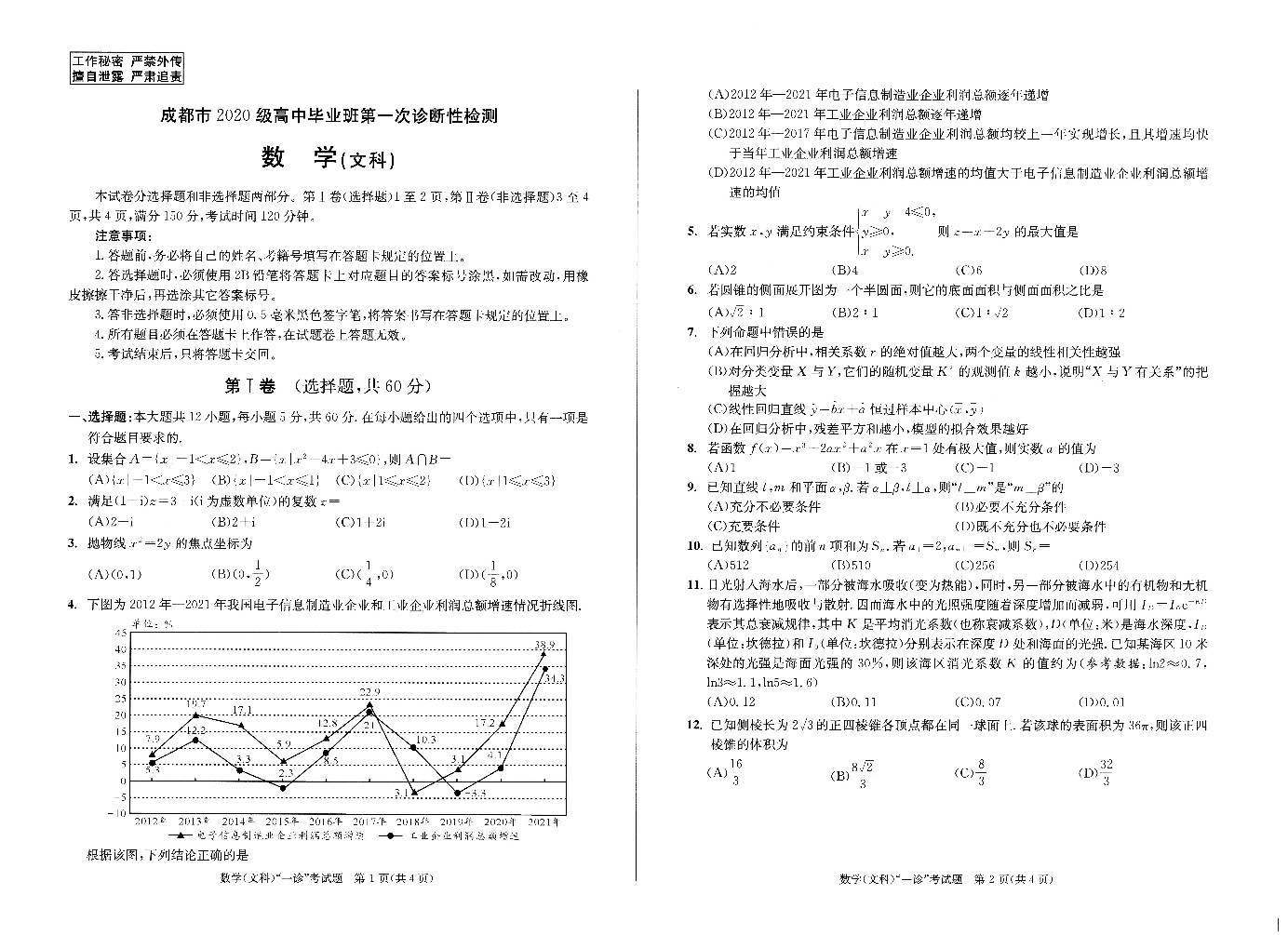 高三文数--四川成都市2020级高中毕业班第一次诊断性检测