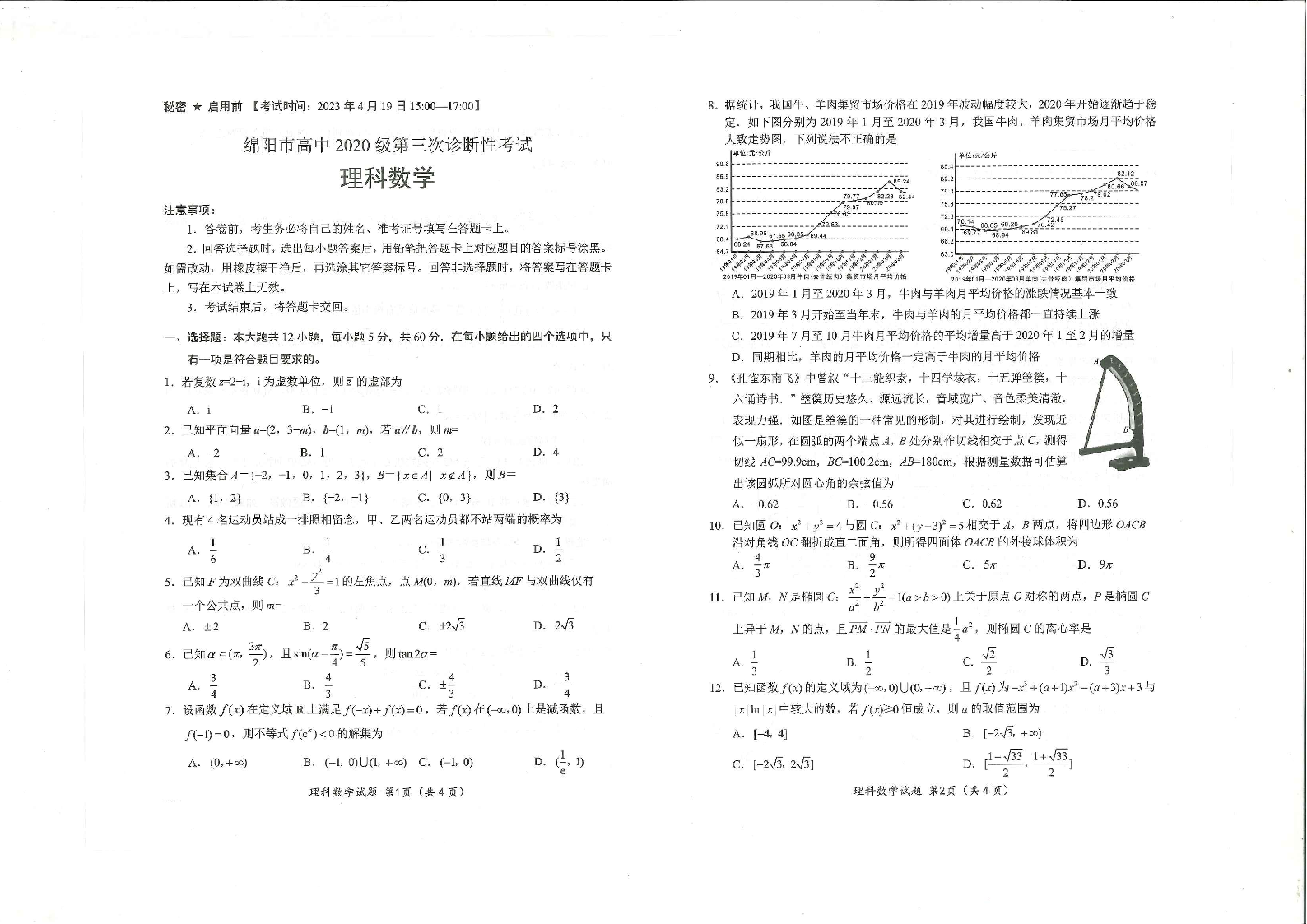 高三理数--四川省绵阳市2023届高三第三次诊断性考试