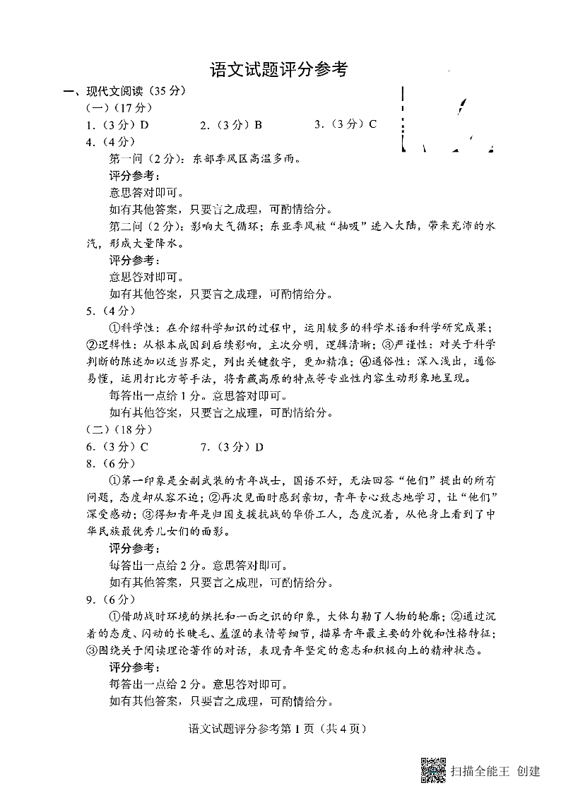高三语文答案--安徽吉林黑龙江云南四省2023届高三适应性考试