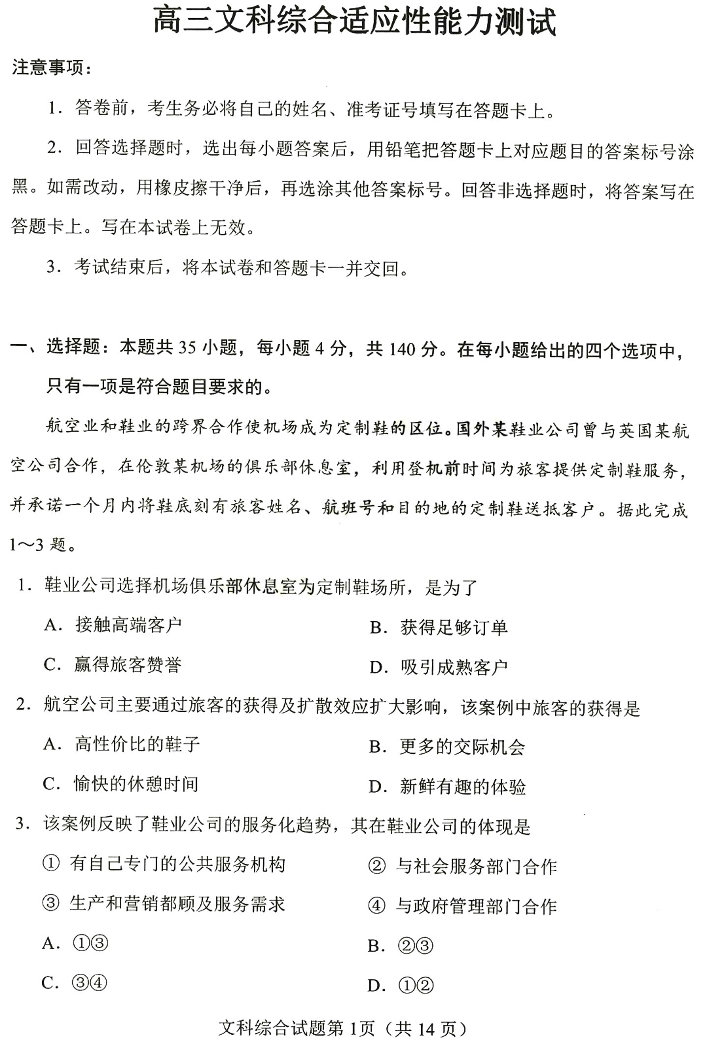 高三文综--安徽吉林黑龙江云南四省2023届高三适应性考试