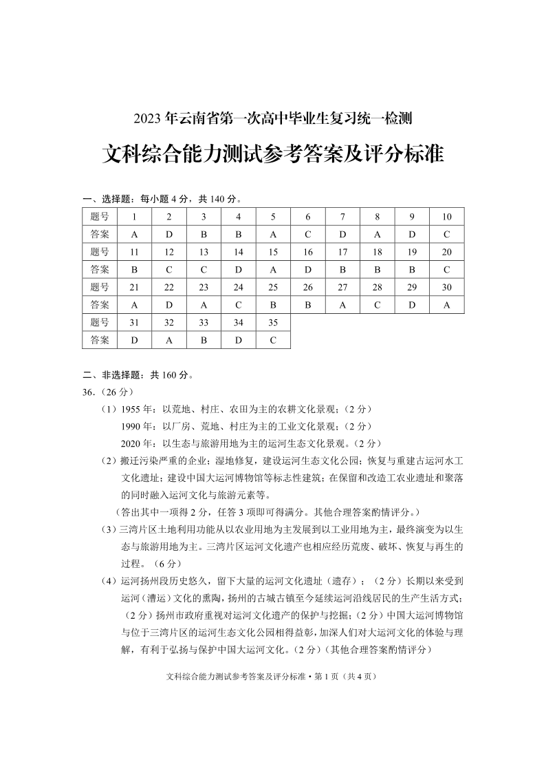 高三文综答案--安徽吉林黑龙江云南四省2023届高三适应性考试