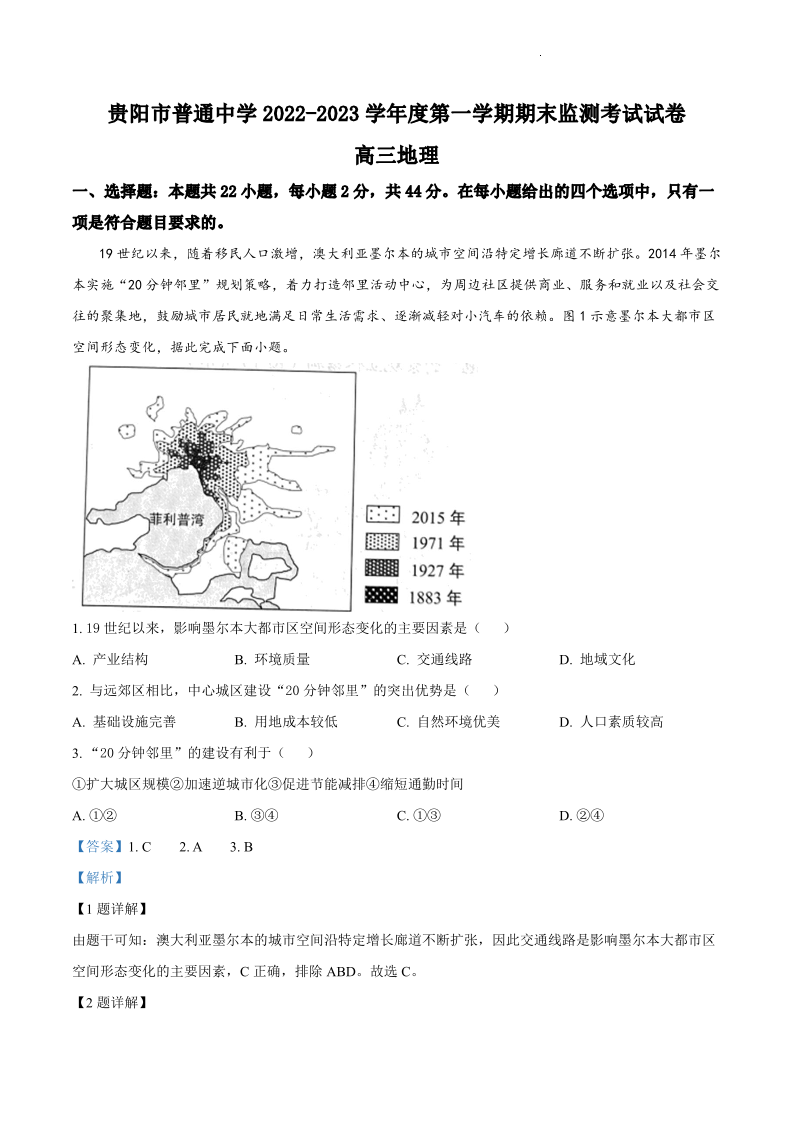 高三地理答案--贵州省贵阳市普通中学2022-2023学年高三上学期期末监测考试