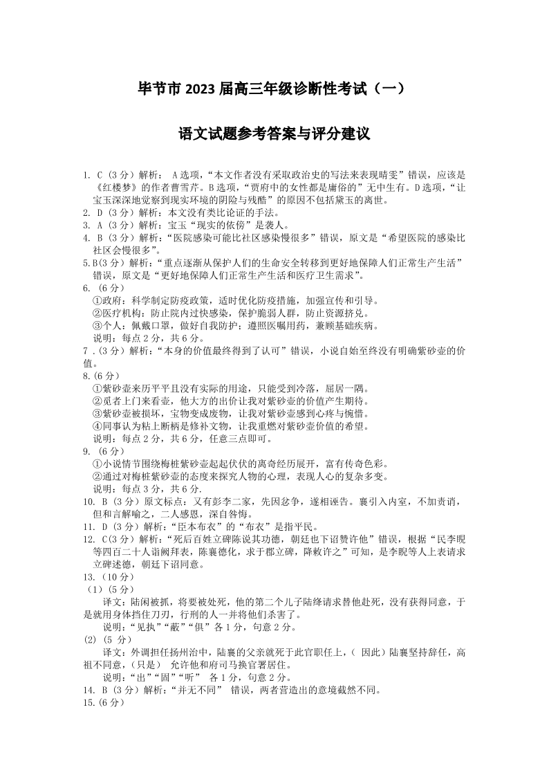 高三语文答案--贵州省毕节市2023届高三年级诊断性考试(一)