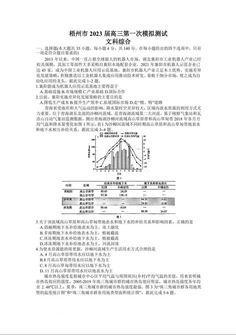 高三文综+答案--广西梧州市2023届高三第一次模拟测