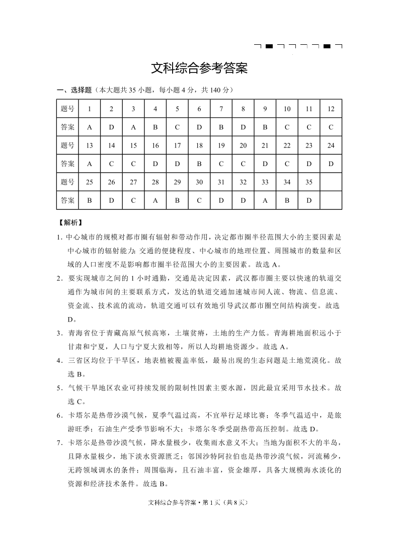 高三文综答案--云南师大附中2023届高考适应性月考卷(七)