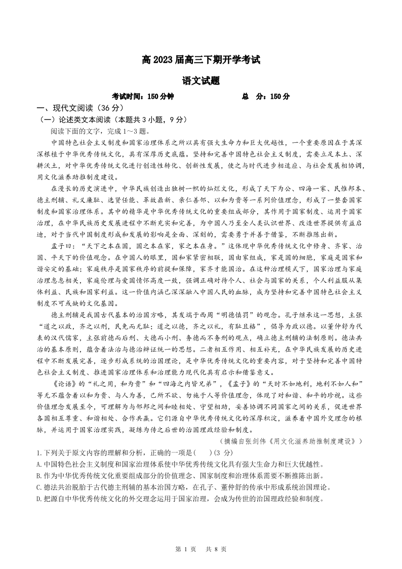 高三语文--四川省成都市第七中学2023届高三下学期入学考试