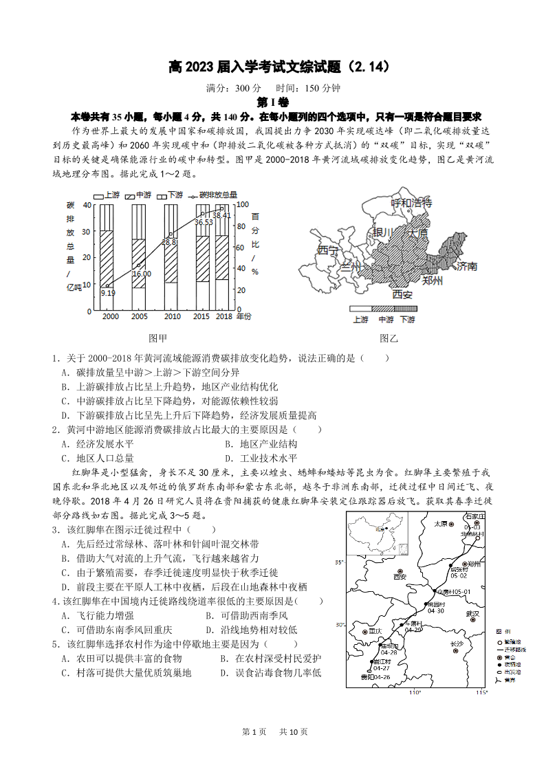 高三文综--四川省成都市第七中学2023届高三下学期入学考试